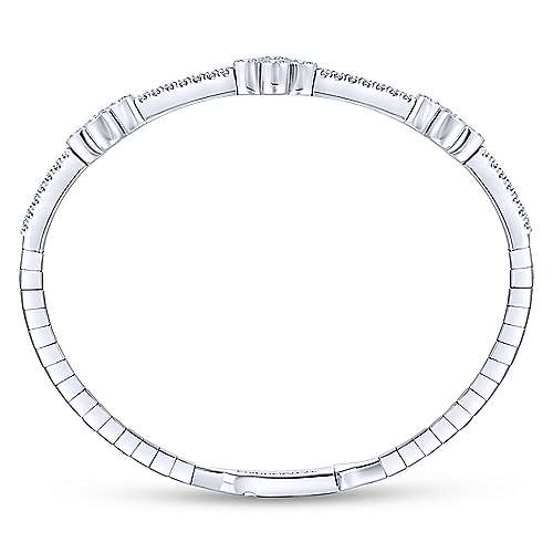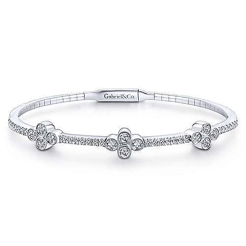 14K White Gold Bangle with Quatrefoil Diamond Stations