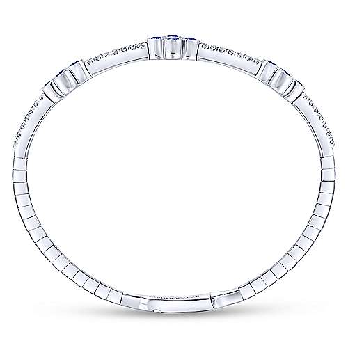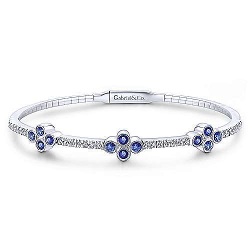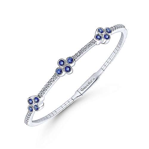 14K White Gold Bangle with Diamond and Sapphire Quatrefoil Stations