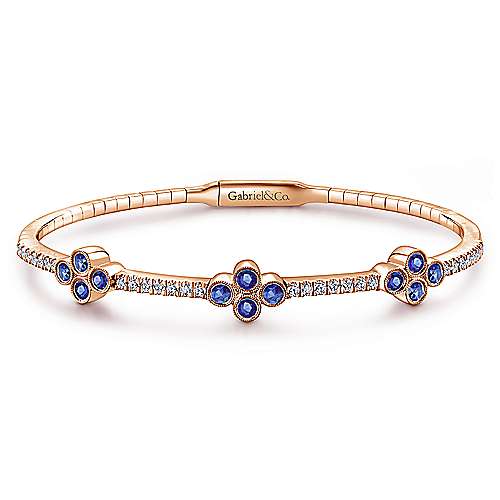 14K Rose Gold Bangle with Diamond and Sapphire Quatrefoil Stations