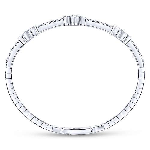 14K White Gold Bangle with Quatrefoil Diamond Stations