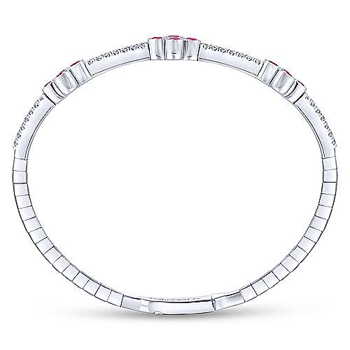 14K White Gold Bangle with Diamond and Ruby Quatrefoil Stations