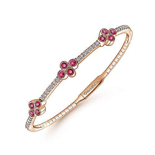 14K Rose Gold Bangle with Diamond and Ruby Quatrefoil Stations