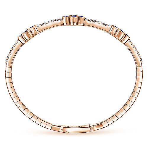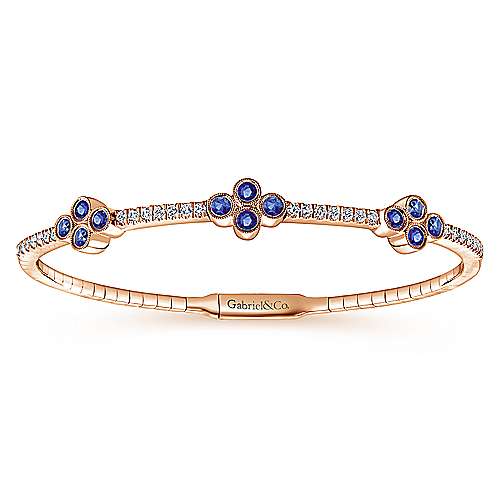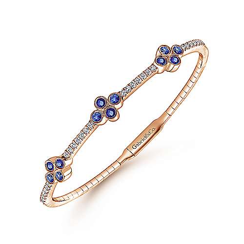 14K Rose Gold Bangle with Diamond and Sapphire Quatrefoil Stations