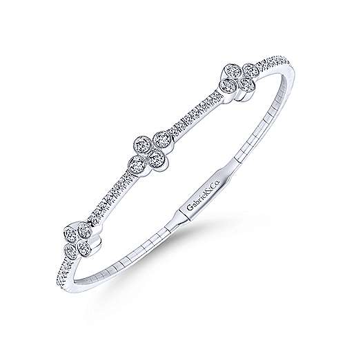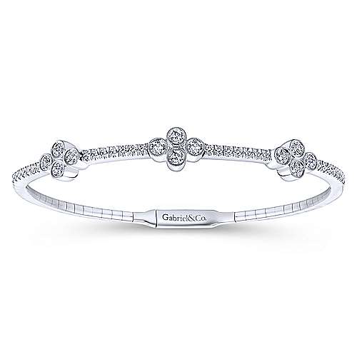 14K White Gold Bangle with Quatrefoil Diamond Stations