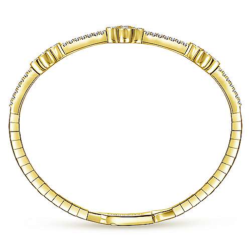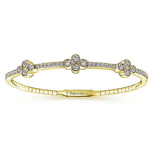 14K Yellow Gold Bangle with Quatrefoil Diamond Stations