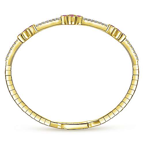 14K Yellow Gold Bangle with Diamond and Ruby Quatrefoil Stations