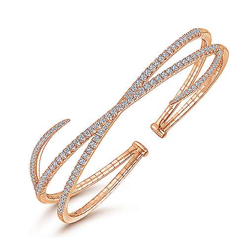 14K Rose Gold Asymmetrical Criss Cross Diamond Bangle