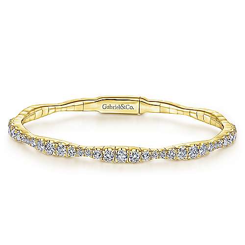 14K Yellow Gold Graduating Diamond Station Bangle