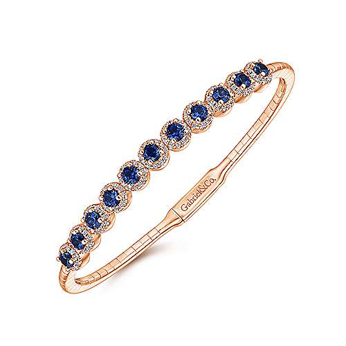 14K Rose Gold Round Sapphire and Diamond Halo Bangle