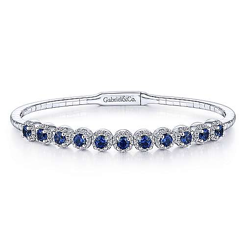 14K White Gold Round Sapphire and Diamond Halo Bangle