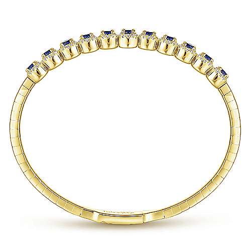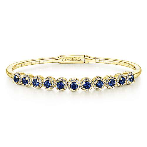 14K Yellow Gold Round Sapphire and Diamond Halo Bangle
