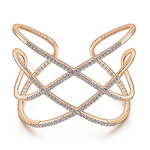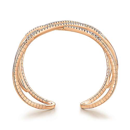 Open 14K Rose Gold Wide Diamond Cuff Bangle
