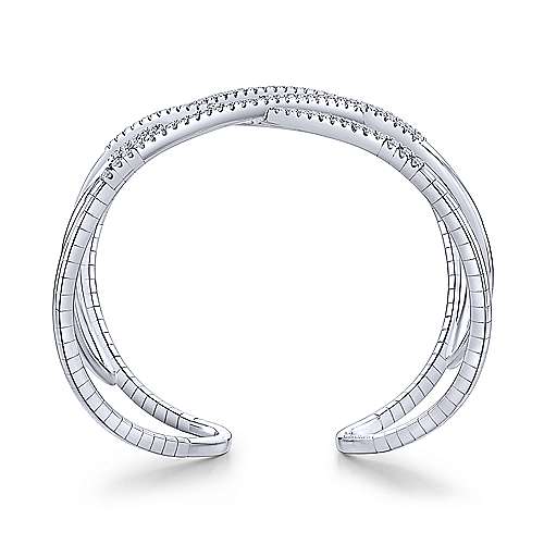 Open 14K White Gold Wide Diamond Cuff Bangle