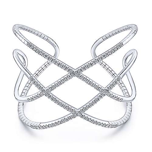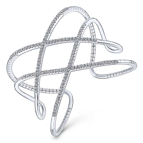 Open 14K White Gold Wide Diamond Cuff Bangle