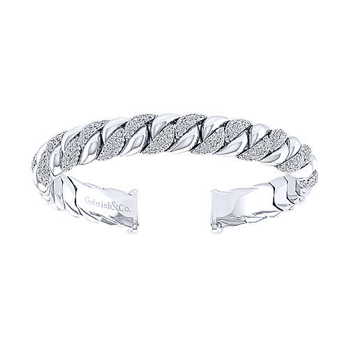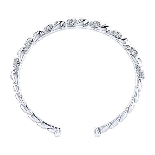 14K White Gold Twisted Link Diamond Pavé Cuff Bracelet