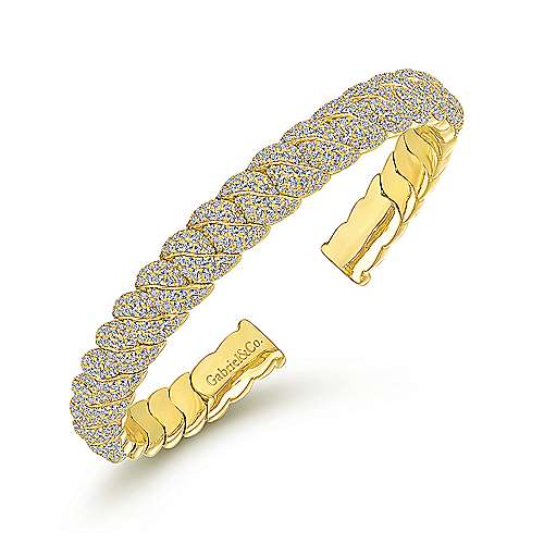 14K Yellow Gold Twisted Link Diamond Pavé Cuff Bracelet