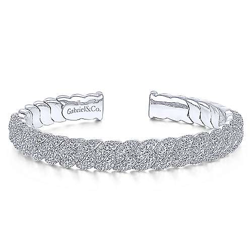 14K White Gold Twisted Link Diamond Pavé Cuff Bracelet