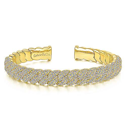 14K Yellow Gold Twisted Link Diamond Pavé Cuff Bracelet