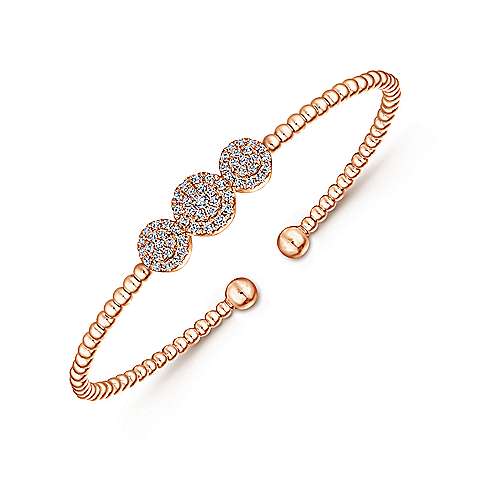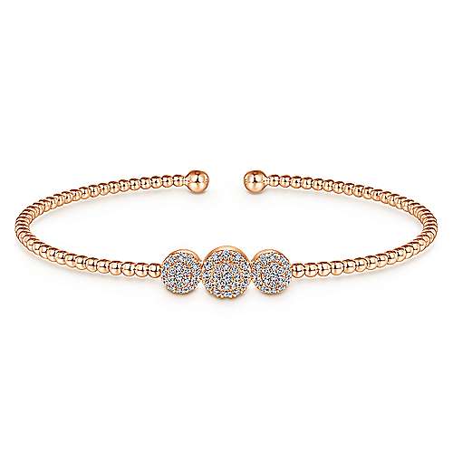 14K Rose Gold Bujukan Bead Cuff Bracelet with Three Pavé Diamond Stations