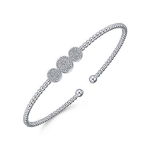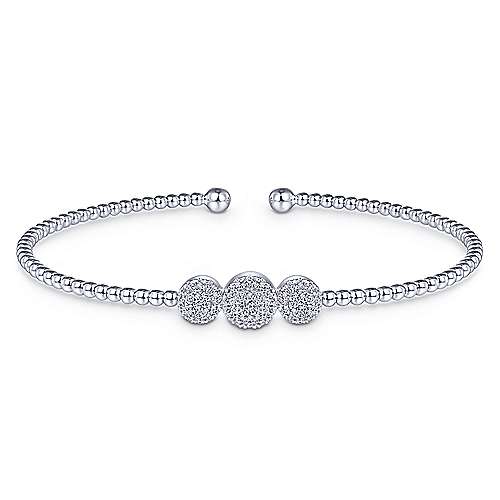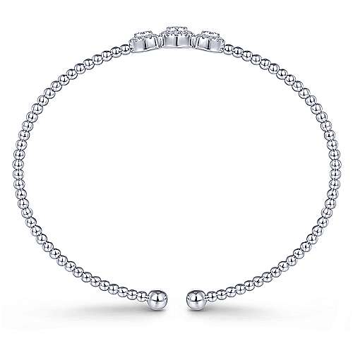 14K White Gold Bujukan Bead Cuff Bracelet with Three Pavé Diamond Stations