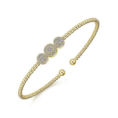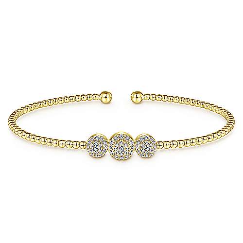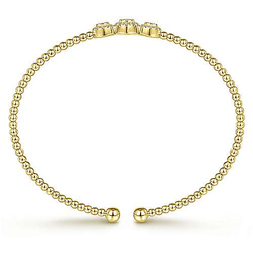 14K Yellow Gold Bujukan Bead Cuff Bracelet with Three Pavé Diamond Stations