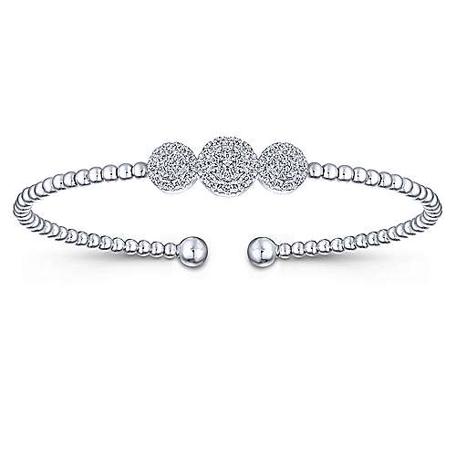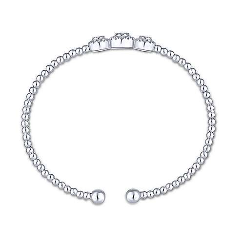 14K White Gold Bujukan Bead Cuff Bracelet with Three Pavé Diamond Stations