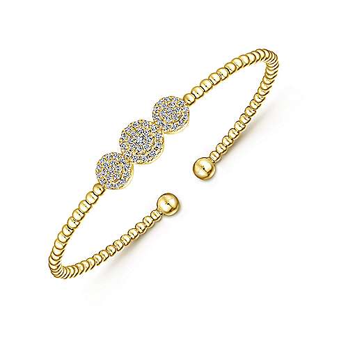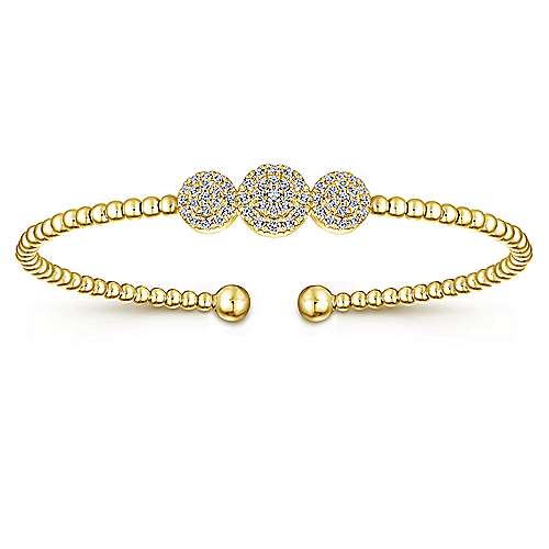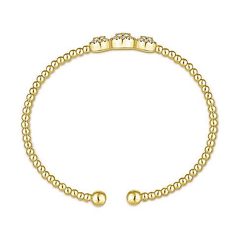 14K Yellow Gold Bujukan Bead Cuff Bracelet with Three Pavé Diamond Stations