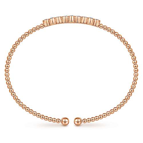 14K Rose Gold Bujukan Bead Cuff Bracelet with Three Quatrefoil Diamond Stations