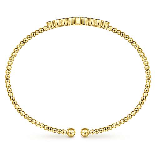 14K Yellow Gold Bujukan Bead Cuff Bracelet with Three Quatrefoil Diamond Stations