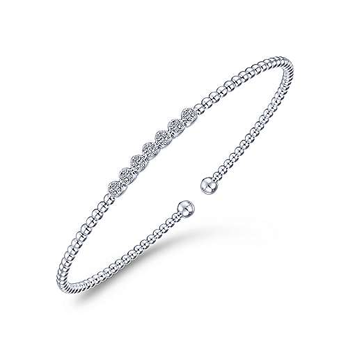 14K White Gold Bujukan Bead Cuff Bracelet with Cluster Diamond Stations