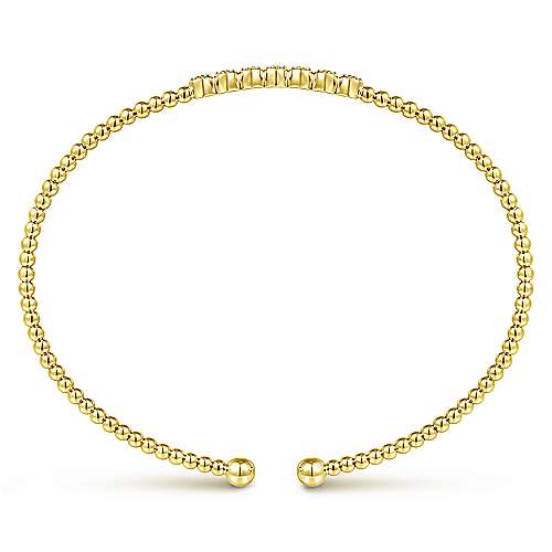 14K Yellow Gold Bujukan Bead Cuff Bracelet with Cluster Diamond Stations