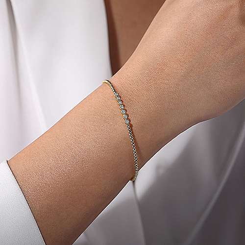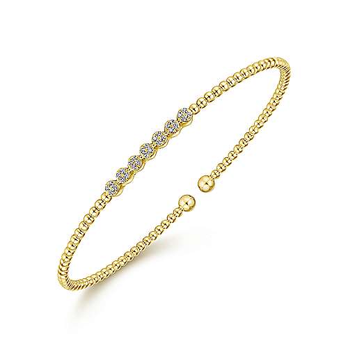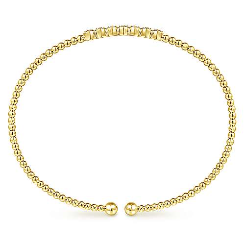 14K Yellow Gold Bujukan Bead Cuff Bracelet with Cluster Diamond Stations