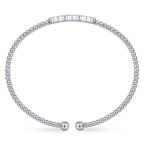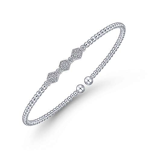14K White Gold Bujukan Bead Cuff Bracelet with Cluster Diamond Hexagon Stations
