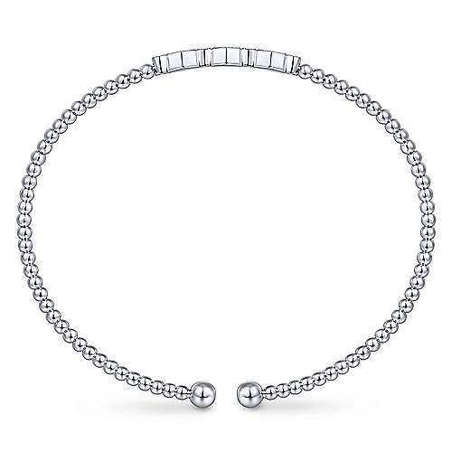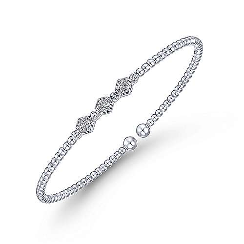 14K White Gold Bujukan Bead Cuff Bracelet with Cluster Diamond Hexagon Stations