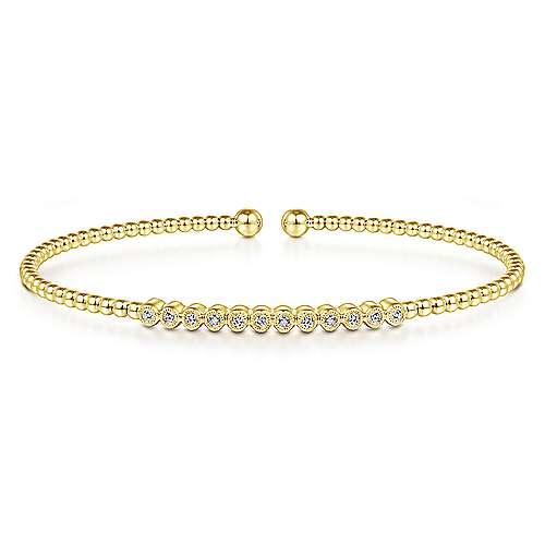 14K Yellow Gold Bujukan Bead Cuff Bracelet with Bezel Set Diamond Stations