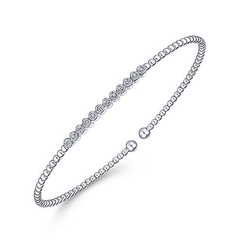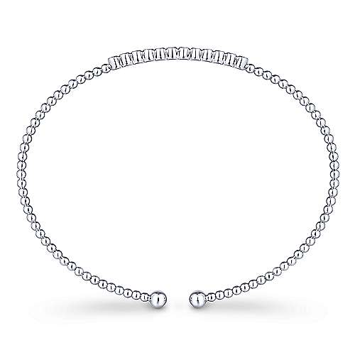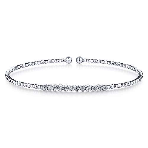14K White Gold Bujukan Bead Cuff Bracelet with Bezel Set Diamond Stations
