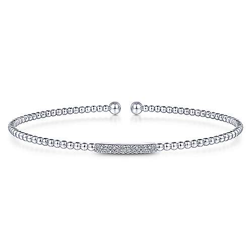 14K White Gold Bujukan Bead Cuff Bracelet with Diamonds