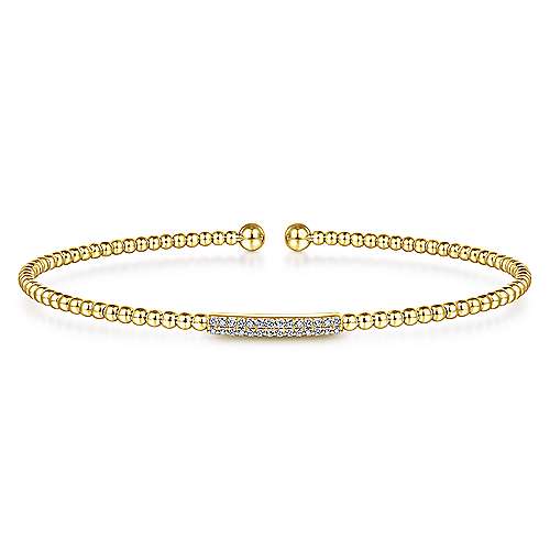 14K Yellow Gold Bujukan Bead Cuff Bracelet with Diamonds