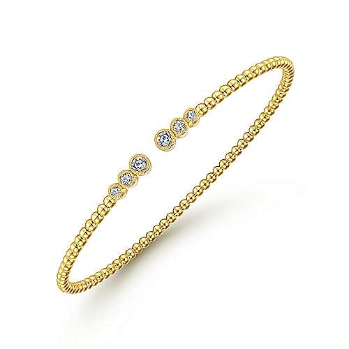 14K Yellow Gold Bujukan Bead Split Cuff Bracelet with Bezel Set Diamonds