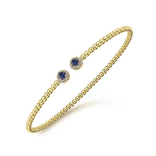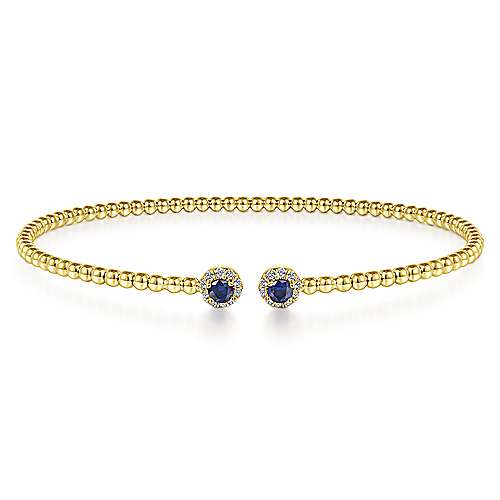 14K Yellow Gold Bujukan Bead Split Cuff Bracelet with Sapphire and Diamond