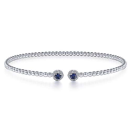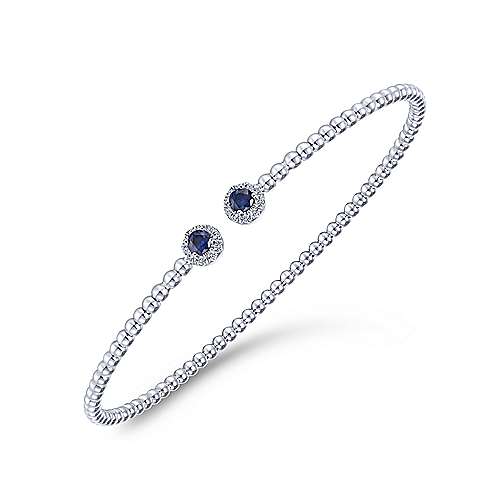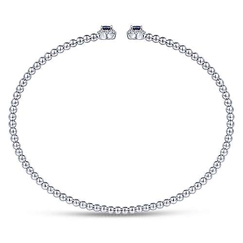 14K White Gold Bujukan Bead Split Cuff Bracelet with Sapphire and Diamond