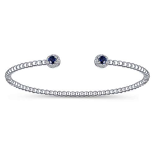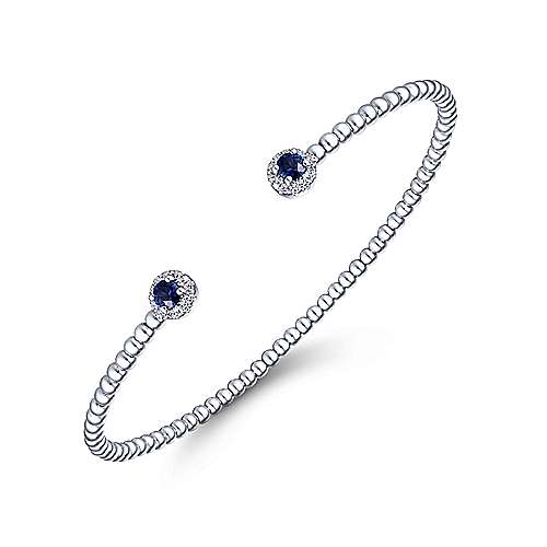 14K White Gold Bujukan Bead Split Cuff Bracelet with Sapphire and Diamond