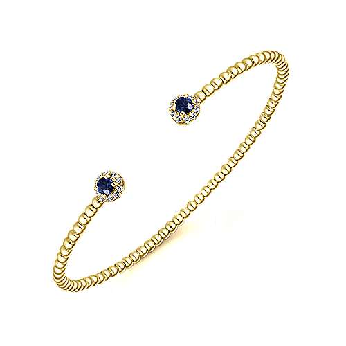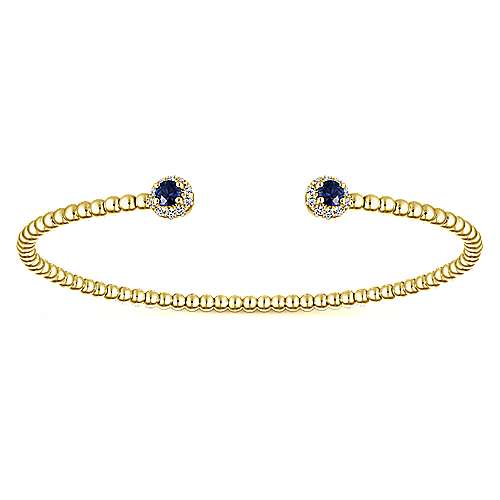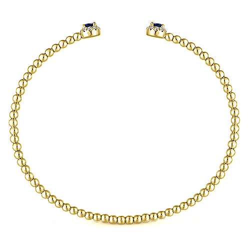 14K Yellow Gold Bujukan Bead Split Cuff Bracelet with Sapphire and Diamond