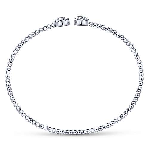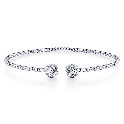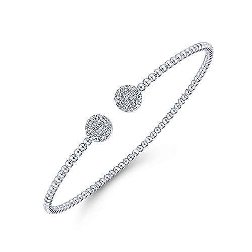14K White Gold Bujukan Bead Split Cuff Bracelet with Round Pavé Diamond Discs