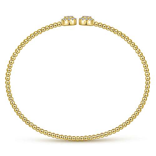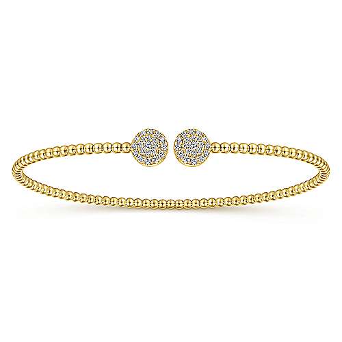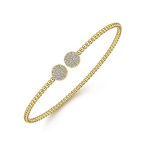 14K Yellow Gold Bujukan Bead Split Cuff Bracelet with Round Pavé Diamond Discs