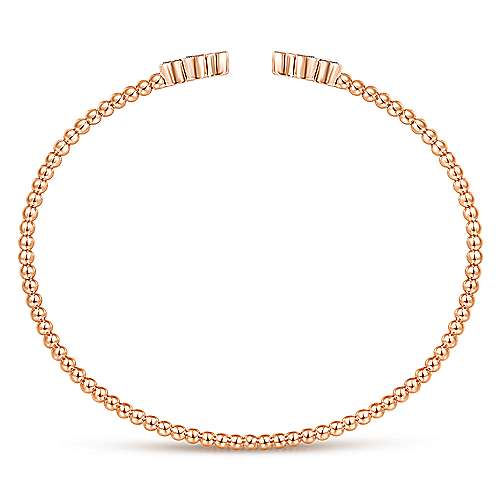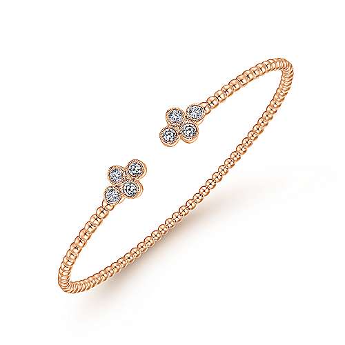 14K Rose Gold Bujukan Bead Split Cuff Bracelet with Quatrefoil Diamond Endcaps