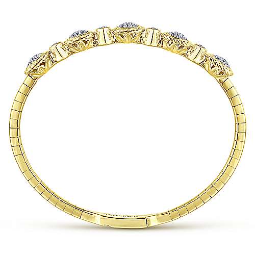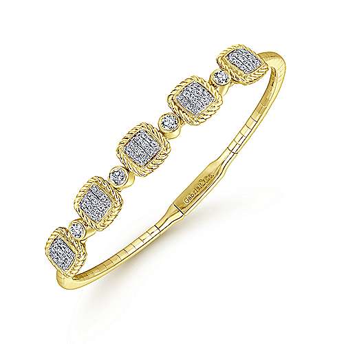 14K Yellow Gold Bangle with Twisted Rope Pavé Diamond Stations