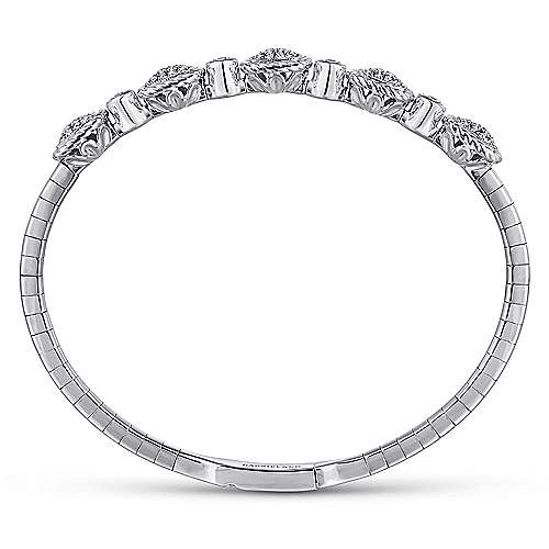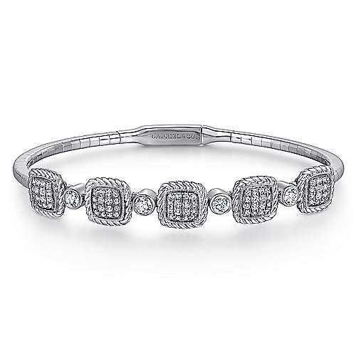 14K White Gold Bangle with Twisted Rope Pavé Diamond Stations