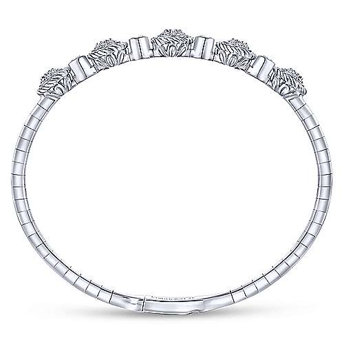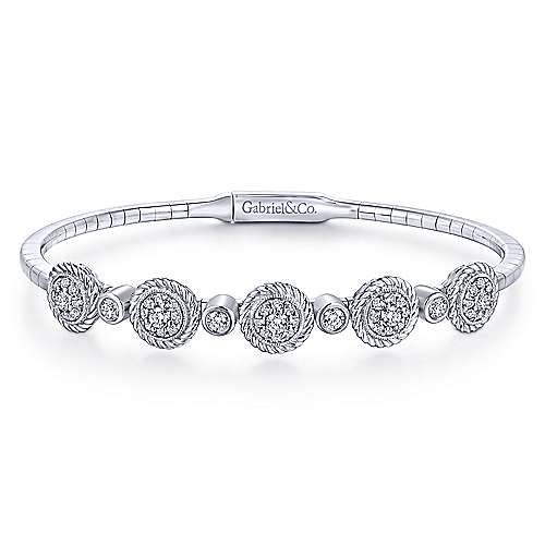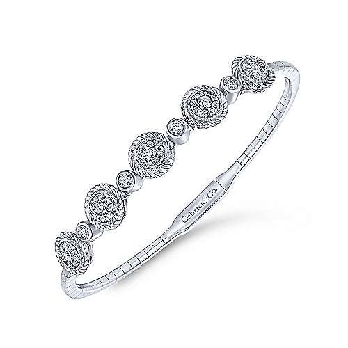 14K White Gold Bangle with Twisted Rope Pavé Diamond Stations