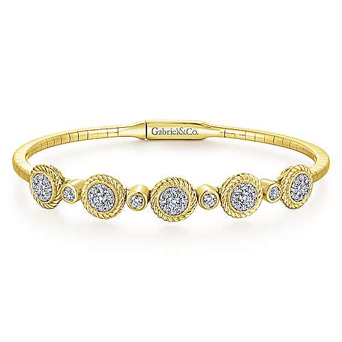 14K Yellow Gold Bangle with Twisted Rope Pavé Diamond Stations